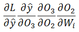 Calculating the derivative for Wᵢ is trickier. Why? Because the weight matrix Wᵢ is shared across all time steps. It was used to calculate O₁, then used again for O₂, and again for O₃.